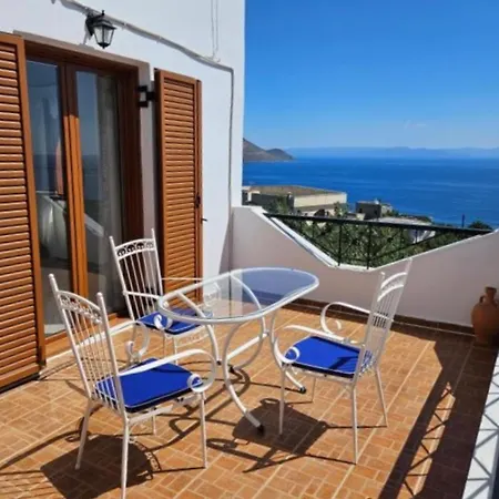 Villa Vasiliki van 120 m^2 biedt een terras met uitzicht op de zee.